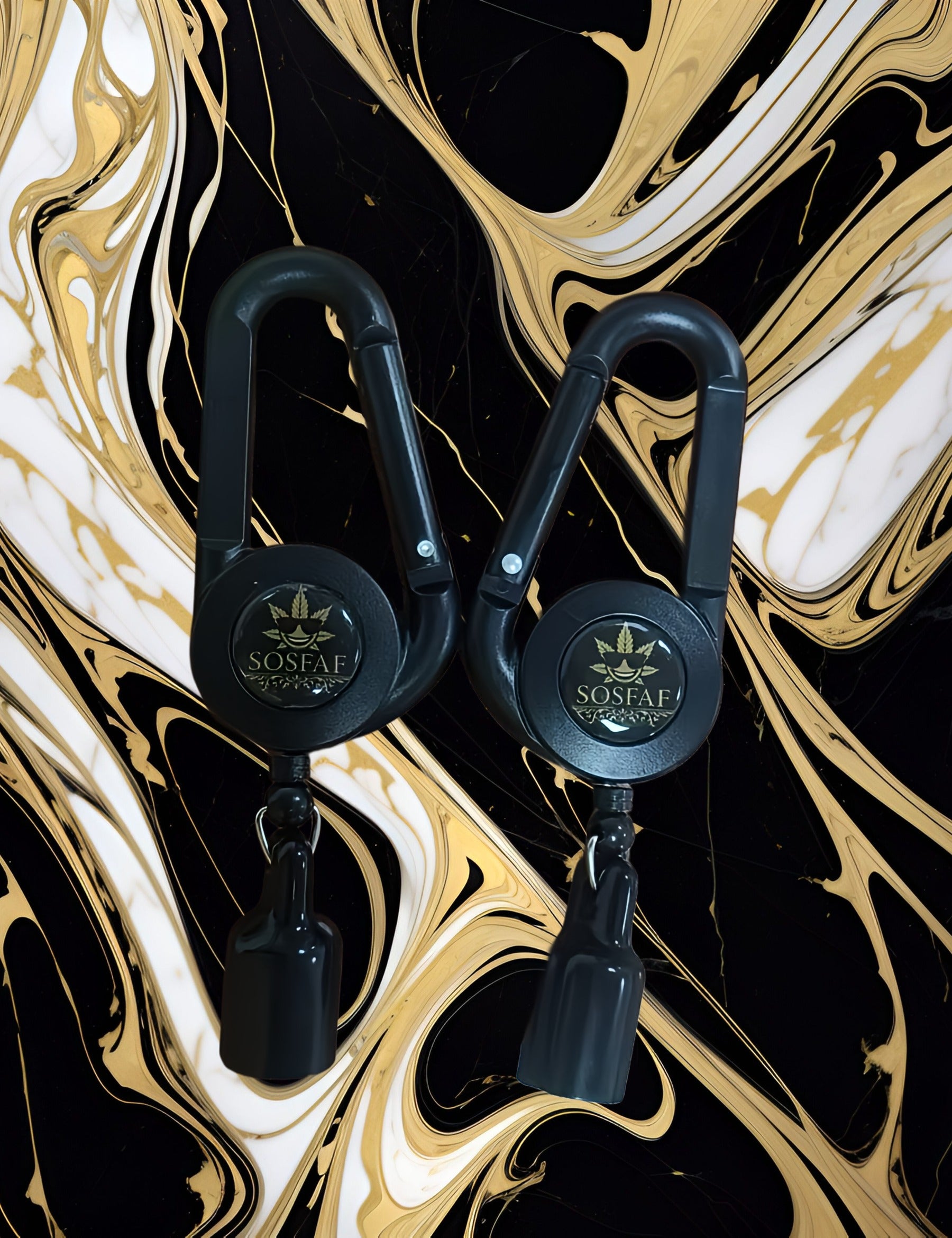 Avec sa finition noire mate et son logo SOSFAF doré sur les deux faces, elle incarne parfaitement l’équilibre entre utilité discrète et identité forte.