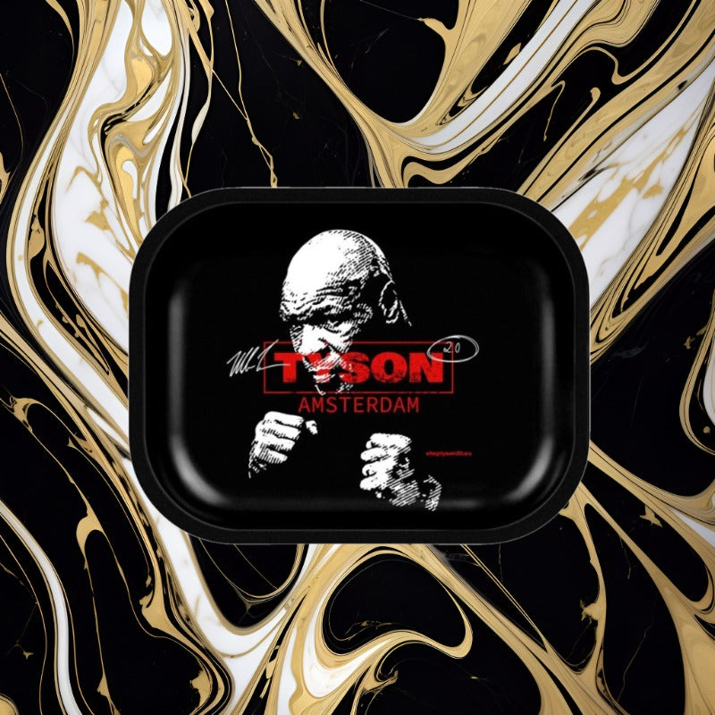Le plateau Tyson 2.0 Boxing Mike se distingue par un portrait stylisé en blanc de Mike Tyson, présenté dans une posture emblématique avec les poings serrés.